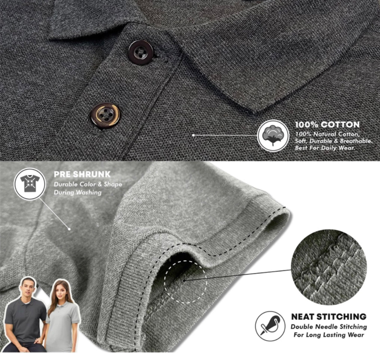 Dengan bahan berkualiti tinggi, Polo Tee kami mengekalkan bentuk dan ketahanan lepas banyak kali dibasuh.
